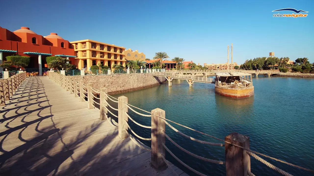 Das Hotel Sheraton Miramar Resort el Gouna liegt auf 9 Inseln, umgeben von Lagunen und verbunden mit Brücken, direkt am hoteleigenen Strand. Ein Traumziel zum Schnorcheln. Die Ortsmitte erreichen Sie nach ca. 1,5 km mit dem Bus- oder Bootservice. Das Resort verfügt über 339 Zimmer.Zu den Einrichtungen gehören eine Lobby mit Rezeption, Hauptrestaurant, Poolrestaurant, orientalisches Restaurant, Lobbybar, Geschäfte, Internet und Wäschereiservice. Im Außenbereich befindet sich eine Süßwasser-Poollandschaft mit drei separaten Kinderpools und Pool-/Snackbar. Die Liegen, Sonnenschirme und Badetücher erhalten Sie am Strand inklusive.Die Zimmer sind modern mit Dusche/WC, Fön, Klimaanlage, LCD-TV mit Sat.-TV, Telefon, Internetanschluss, Safe, Minibar, Zubereitungsmöglichkeiten für Kaffee und Tee und Balkon oder Terrasse eingerichtet. Die Familienzimmer sind zwei Doppelzimmer mit Verbindungstür, bei sonst gleicher Ausstattung.All Inclusive werden als Verpflegungsmöglichkeiten angeboten. Bei Buchung von All Inclusive erhalten Sie zusätzlich ein kontinentales Langschläferfrühstück bis 10:30 Uhr, Mittagessen, Eis von 11-17 Uhr, Snacks, Kaffee/Tee und Gebäck von16-18 Uhr sowie lokale alkoholfreie und alkoholische Getränke von 11–23 Uhr.Neben einem täglichen Unterhaltungsprogramm mit Musik, bietet das Resort für die Freizeitgestaltung einen Fitnessraum, Tischtennis, Darts, Boccia, Beachvolleyball, Strandfuß-/Wasserball, Aerobic, Wassergymnastik, geführte Mountainbiketouren und gegen Gebühr Fahrradverleih und Billard. Eine Tauch-/ Surfschule und Wassersportstation werden durch Fremdanbietern geboten. Die Möglichkeiten für Reiten, Golf, Tennis und Squash befinden sich Hotelnähe. Im Wellnessbereich mit Dampfbad und Sauna können Sie bei verschiedenen Anwendungen entspannen. Für Kinder stehen ein überdachter Spielplatz, der Miniclub (5–12 Jahren) und ein Minidisco bereit. Im Restaurant gibt es Kinderbuffets und Hochstühle.
