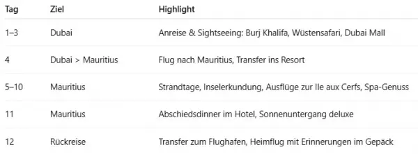 Beispielhafter Reiseplan – 12 Tage Sonne & Abenteuer