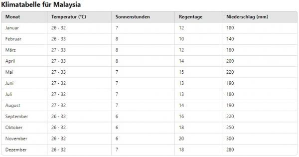 • Westküste (z. B. Langkawi, Penang): Beste Reisezeit: November – April